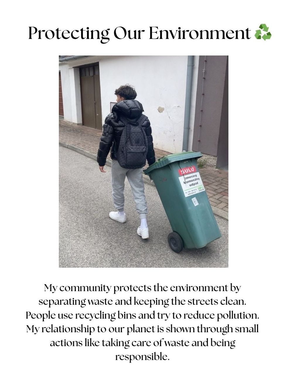 Aktivita prebiehala vonku – študenti mali za úlohu odfotiť niečo zo svojho okolia a k fotografii v angličtine napísať odpoveď na jednu z otázok: